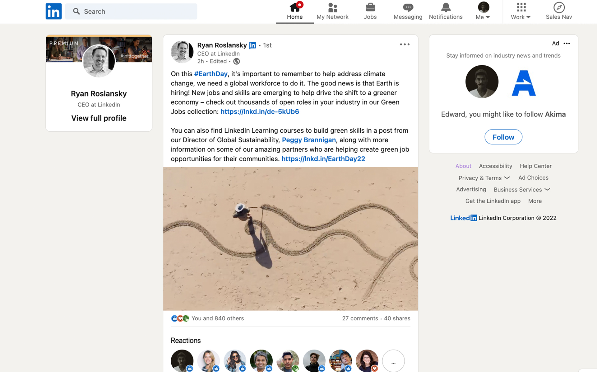 From a few social posts to a full campaign in just a couple weeks, including a narrative film, social-friendly video, and even an interview with our artist. We ended up putting the film on the LinkedIn social impact website, where it’ll live beyond Earth Month.