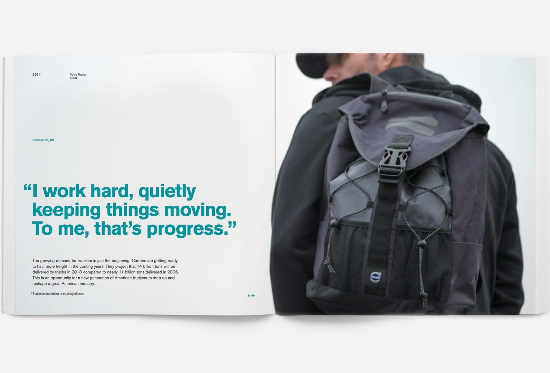 Look around. Virtually everything you see was hauled by a truck. If the Volvo truck driver is different, what sets him apart? We think it’s attitude. With quotes such as “My truck connects me to you — to the world” we’re trying to inspire drivers and everyone who shares the road.