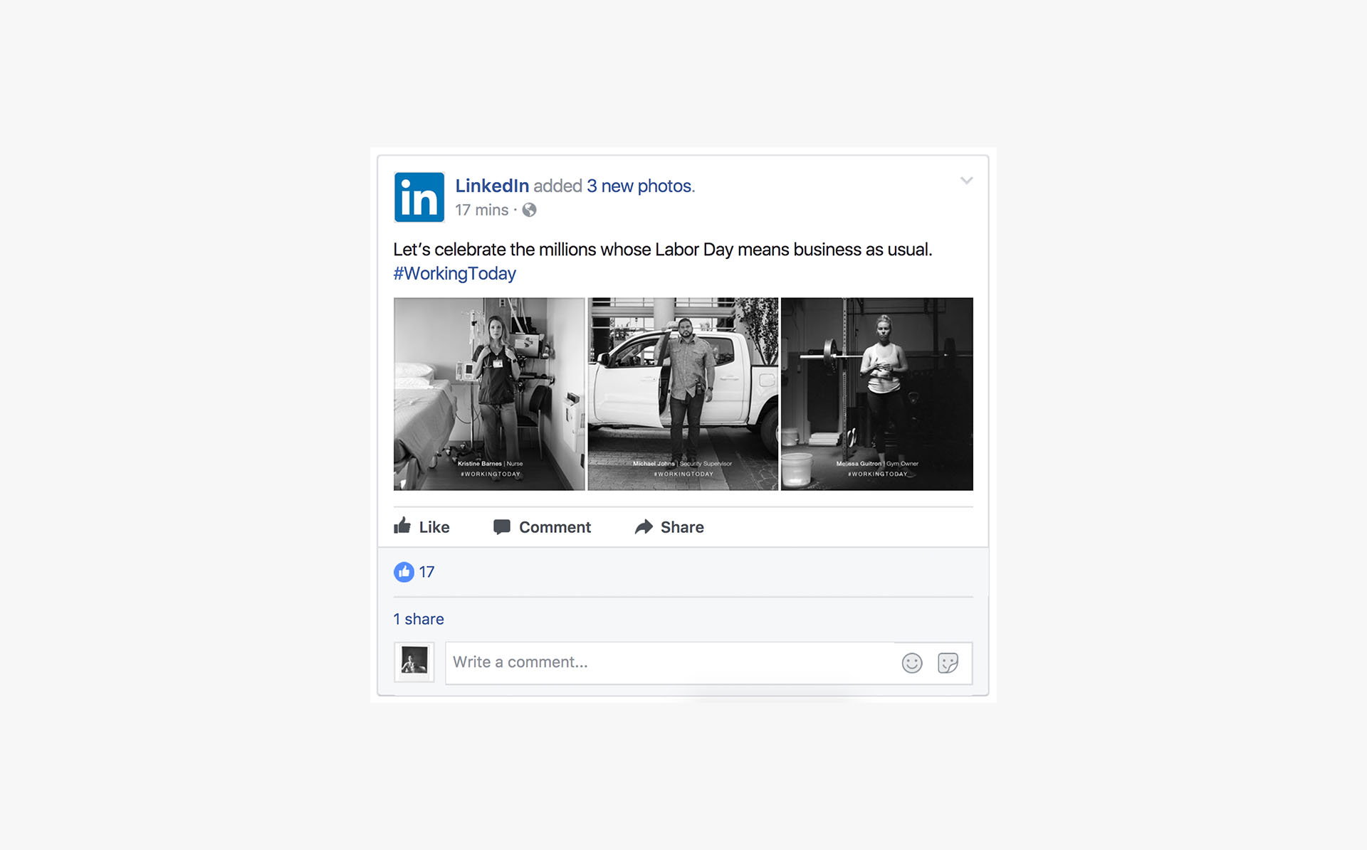 With less than a week before Labor Day, my partner and I started calling everybody. Through friends and family, we found five real professionals working that day. Inspired by Robert Frank’s photography of working-class Americans in the 1950s, we dusted off a Hasselblad 500 from my collection and traveled to real work sites. In the end, we saw one of the most engaged organic posts since LinkedIn got on LinkedIn.