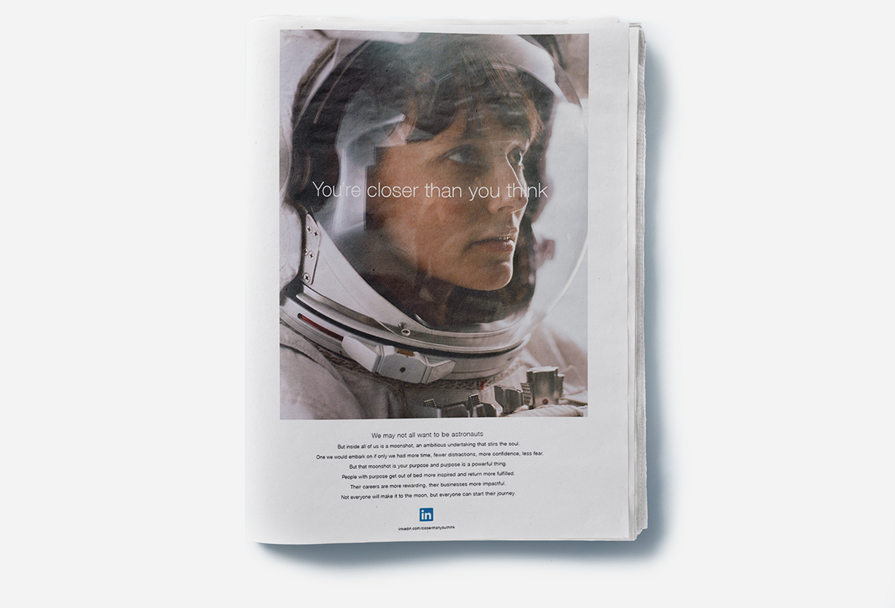 We wrote and produced LinkedIn’s first TV spot in time for the Oscars. NASA provided the footage. Our CEO gave us the story. It shares how his dad inspires him to keep going no matter how far away a job, a skill, or a mentor may seem. The signoff speaks to everybody: “You’re closer than you think.”
